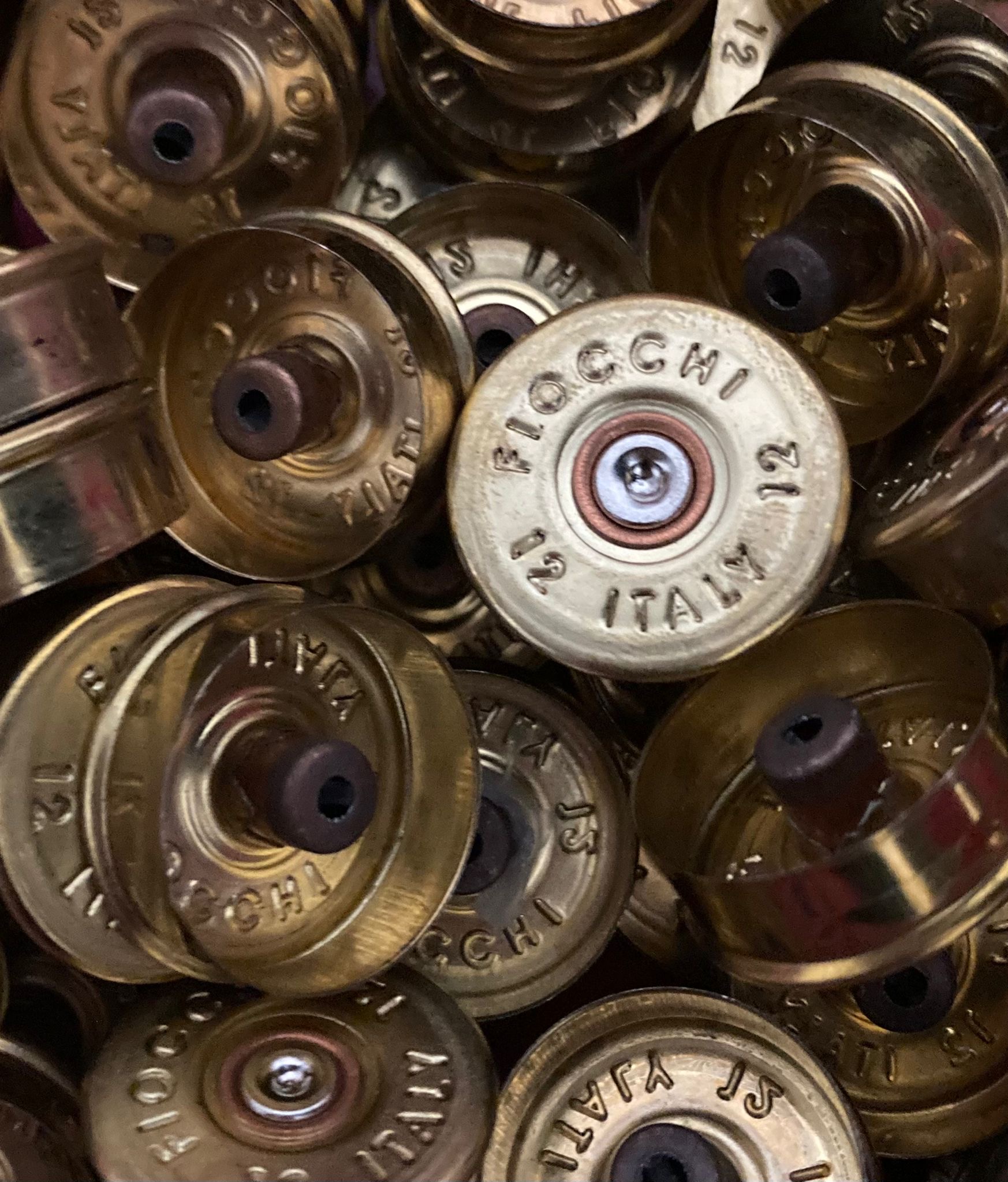 Empty spent shotgun shells / BRASS PLATED SHELL CAPS REMOVED FROM THE PLASTICE BASE